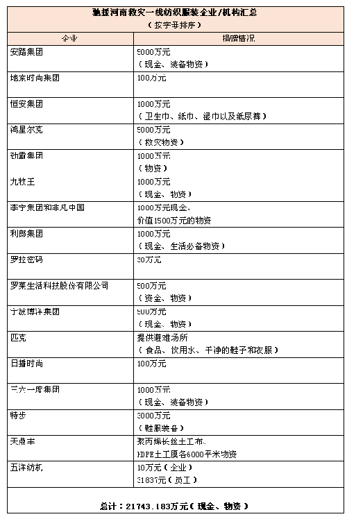 | 馳援河南,紡織服裝企業累計捐資捐物超2.17億元(附捐贈名單) |