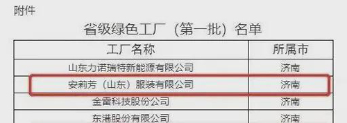 | 安莉芳服裝公司獲得山東省首批綠色工廠榮譽稱號! |