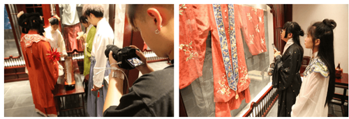 隨后,參會(huì)嘉賓與院校師生們一起參觀洋溢著國(guó)風(fēng)古韻的“池上錦”漢服特色產(chǎn)業(yè)街區(qū),并與街區(qū)品牌商戶進(jìn)行互動(dòng)交流,體驗(yàn)漢服文化的豐厚底蘊(yùn)。