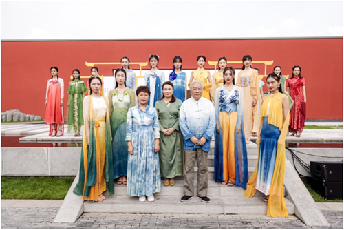 植物染非遺傳承人黃榮華(前排右三)與設計師王恕兒(前排左四) 漢服熱是本土文化認同的覺醒 漢服是華夏文明的重要組成部分,是漢民族傳承了數(shù)千年的傳統(tǒng)民族服飾,漢服正在成為一種新的流行文化風潮,不僅代表著傳統(tǒng)和現(xiàn)代文化交織的自我表達,更是中國民族精神的承載物。如今出現(xiàn)的漢服熱國潮熱,都是當今中國本土文化認同的覺醒。 中國自古就被稱為衣冠上國、禮儀之邦,而“衣冠”也是文明的一種代名詞,是華夏禮儀的一部分。這次秀場絕美的漢服時裝之外,此次創(chuàng)意秀所配置的頭飾主要有發(fā)簪、發(fā)釵、步搖、花鈿、珠花等,涵蓋部分漢代頭飾款式,模特妝容上也結合了古代妝容現(xiàn)代演繹。