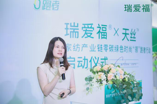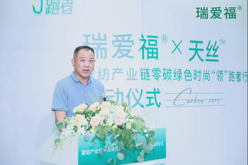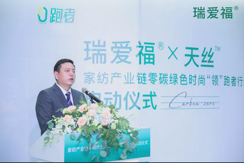 江蘇瑞愛福紡織科技有限公司董事長胡文彪在發言時談到,瑞愛福一直致力于家紡綠色高端面料的研發,于2014年與奧地利蘭精集團形成戰略合作伙伴關系,此次與蘭精攜手推出零碳天絲?面料,旨在發揮國際家紡產業集聚優勢,將低碳環保理念深度融入家紡產業供應鏈,不斷壯大零碳綠色時尚“領”跑者隊伍,做家紡產業可持續發展的有力推進者與踐行者,從產業鏈綠色可持續發展的角度,打造更多綠色環保的優質產品,將可持續發展時尚理念傳遞給消費者。