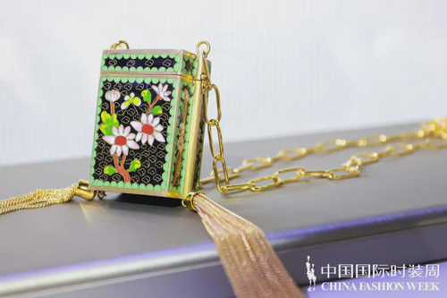 ![]() 第一個(gè)系列“溯源”,使用了大量東方元素老物件,把經(jīng)典煥新為時(shí)尚,將祖母輩的回憶,以時(shí)尚的表達(dá)方式融入當(dāng)下年輕人的精致穿搭。比如,超大項(xiàng)圈鑲上925銀動(dòng)物形狀老物件,下綴以白水晶流蘇,又古典又現(xiàn)代;袖珍的黑色小坤包以景泰藍(lán)鳳凰紋扣子作為搭扣,十分點(diǎn)睛。