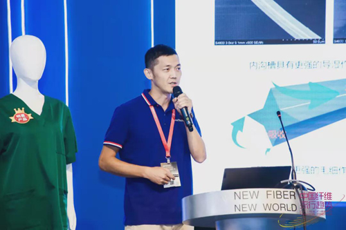 ▲韓燚 高烯科技技術總監韓燚重點推介了石墨烯保暖抑螨絮片(烯絲絨)、石墨烯保暖抑菌搖粒絨、石墨烯抗紫外防曬服面料、石墨烯速干纖維面料、石墨烯中空截面保暖纖維面料等多款石墨烯康護纖維。 從標識到共識,推動行業規范有序發展