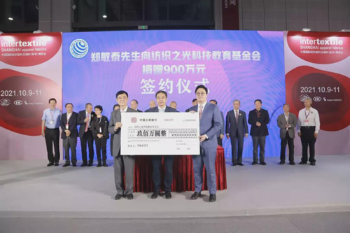 本刊記者-鄔瑩穎 向陽而生,追光前行,“紡織之光”是2000萬紡織人共同的行業(yè)之光、科教之光、公益之光、榮耀之光和時代之光。行業(yè)邁向“十四五”,踐行“科技、時尚、綠色”高質(zhì)量發(fā)展之際,又迎來喜訊。10月9日,在中國紡聯(lián)秋季聯(lián)展開幕之日,安莉芳集團(tuán)創(chuàng)始人鄭敏泰先生向紡織之光科技教育基金會捐贈900萬元,捐贈儀式在上海國家會展中心7.1-E132 熱點交流區(qū)舉行。