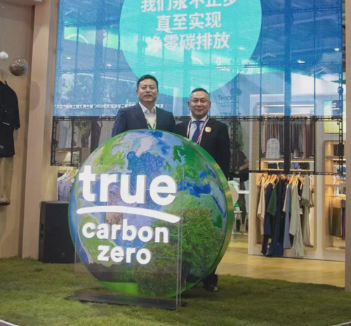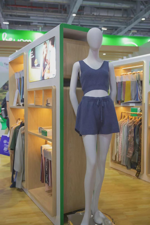 本屆展會上,蘭精集團著重展示了取材可持續天然木源的零碳天絲?萊賽爾纖維和零碳天絲?莫代爾纖維的各類應用。零碳天絲?纖維完全源自于植物,100%生物基,可再生,可生物降解,不僅具備了標準天絲?品牌纖維的功能優勢,包括親和肌膚、持久柔軟、觸感順滑、有助透汽和色澤穩定等,更是獲得了國際Carbon Neutral?認證,成為遵循全球“CarbonNeutral?碳中和協議”的最嚴格準則的凈零碳排放產品,具備更高的環保價值。