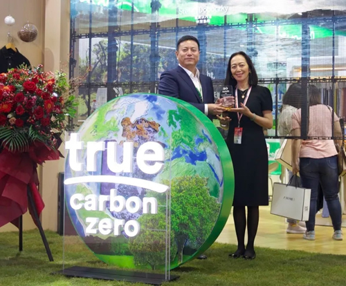 法蘭克福展覽(香港)有限公司高級總經理溫婷為蘭精頒發參加intertextile20周年紀念獎杯 零碳天絲?纖維 為可持續時尚賦能 作為首家獲批科學碳目標的木質纖維素纖維生產企業,同時也是《聯合國時尚業氣候行動憲章》的簽署方,蘭精將氣候承諾付諸實踐,于2020年推出零碳天絲?纖維,為消費者提供了全新的零碳生活選擇。