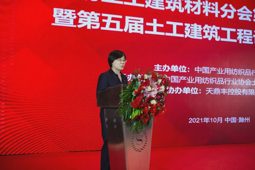 新發展格局下,為推動土工與建筑紡織品行業更高質量、更高水平、更高效率的發展,10月12日,中產協土工建筑材料分會在滁州召開了第三次會員大會暨第五屆土工建筑工程設計創新論壇。中國紡織工業聯合會副會長、中國產業用紡織品行業協會(簡稱中產協)會長李陵申,中國工程院院士孫晉良通過視頻方式為大會致辭;中產協副會長李桂梅,滁州市副市長姚志、經開區管委會主任吳孝水,中國建筑防水協會副會長陳岳,中產協土工用紡織合成材料分會會長、宏祥新材料股份有限公司董事長崔占明,天鼎豐控股有限公司董事長聶松林,安徽紡織行業協會會長、安徽金春無紡布有限公司董事長曹松亭,以及來自土工與建筑用紡織品產業鏈上下游的專家、學者和企業代表參加了會議。