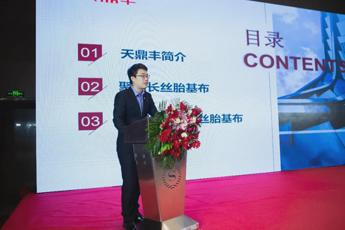 天鼎豐控股有限公司技術總監劉沖分享了《聚酯長絲胎基布生產技術》。他介紹到,天鼎豐創新性提出了高效聚酯紡粘針刺胎基布一步法連續生產技術路線,并研發了相關成套裝備,研制了一步法生產線數字控制系統(DCS)和生產線柔性化集成技術。與國內大部分兩步法生產線比較,聚酯紡粘針刺胎基布一步法生產技術具有連續生產穩定可靠、產品質量優秀、生產線自動化程度高、勞動用工少、生產效率高、生產成本低等特點。
