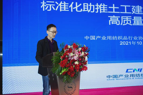 中產協科技發展部副主任黃景瑩在《標準化助推土工建筑紡織材料行業高質量發展》的報告中,從產業用紡織品標準化體系現狀、土工建筑紡織材料行業標準現狀和標準化與行業未來發展三方面進行了介紹。目前,產業用紡織品標準化已形成涵蓋國標、行標、團標的體系,為自然災害應對、醫療衛生條件改善、環境污染治理、航空航天和國防軍工配套、重點工程和基礎設施建設中提供了較好的技術支撐;2018年中產協成為ISO/TC 221國內技術對口單位,深度參與國際土工合成材料標準工作,推動了國際、國內相關標準的轉化和融合。他建議,行業標準化未來發展,可從研究量化土工建筑材料在生命周期中的減碳作用等方面展開和深入。