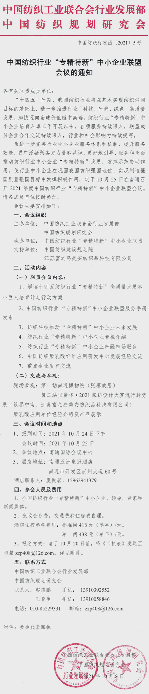 今年是我國“十四五”規(guī)劃的開局之年。中國紡織工業(yè)聯(lián)合會今年六月正式發(fā)布了《紡織行業(yè)“十四五”發(fā)展綱要》及《科技、時尚、綠色發(fā)展指導(dǎo)意見》,確立了紡織行業(yè)“十四五”時期在整個國民經(jīng)濟中定位于“國民經(jīng)濟與社會發(fā)展的支柱產(chǎn)業(yè)、解決民生與美化生活的基礎(chǔ)產(chǎn)業(yè)、國際合作與融合發(fā)展的優(yōu)勢產(chǎn)業(yè)”的指導(dǎo)方針。中國紡織規(guī)劃研究會七屆四次理事會會議自去年11月召開以來,圍繞研究會年度工作目標(biāo)和任務(wù),各項工作有序開展。根據(jù)“綱要及指導(dǎo)意見”,并根據(jù)“十四五”時期紡織行業(yè)發(fā)展重點,研究和落實研究會下一階段重點工作,經(jīng)秘書處研究,并與中國紡織規(guī)劃研究會副會長單位、理事會理事單位商議,決定于10月24日在江蘇南通召開中國紡織規(guī)劃研究會七屆五次理事會擴大會議。