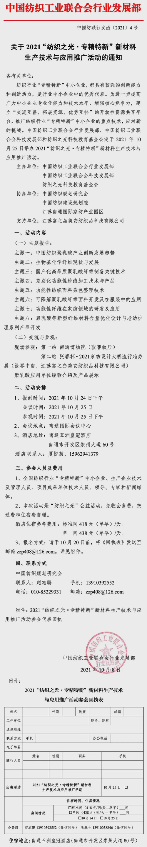 | 2021“紡織之光·專精特新”新材料生產技術與應用推廣活動將在南通舉辦 |
