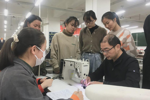 “灶臺雖然是隔開的,都在棚子里,但是吃飯的桌子是沒有隔開的,經常我們炒好一個菜,去做下一個菜時,大家已經坐一起品嘗上了。大部分時間,大家都是端個大碗,在一起邊吃邊聊。你來我往的多了,感情就更篤厚了?!睉浧甬斈暌黄饖^斗的時光,大家心里都暖暖的,已不記得當時的苦。 技術爭端、簡易食堂,在江服的這些年,涂潤華先生帶給教師們的不僅是一抹煙火氣、精神氣,更以細致入微的關懷完成愛心傳遞。 談育人 敢想敢干、薪火相傳 江服的教師們接過愛心接力棒,對待學生盡職盡責,傾囊相授。 “有教無類是每個教師必備的師德。《學記》中曾有言:‘親其師,信其道。’作為教育者,對學生我們既要共情,還應該學會放下權威,為他們創造安心的、敢于提問的學習環境,放手讓學生們去學習,培養獨立思考的能力?!闭f到育人,作為最年輕的“老”教師,閔悅表示,最有成就感的事情莫過于自己指導的學生參加大賽并獲獎。在江服任教的25年來,她先后擔任服裝結構設計教研室主任、服裝工程學院院長,現任服裝設計學院院長。2016年,閔悅指導的學生韋艷梅獲得了中國新人獎第一名,實現了學校在該獎項上零的突破。