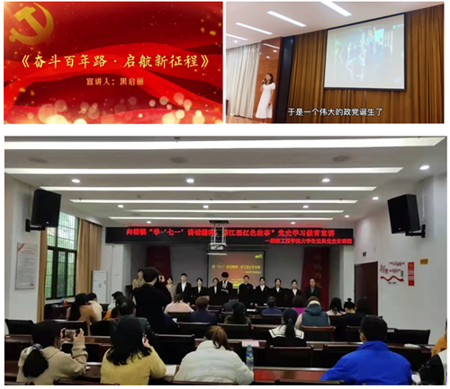 江西服裝學院服裝工程學院組建大學生黨員黨史宣講團以來,嚴格做好宣講團成員選拔招募,明確黨史宣講要求,安排黨史宣講培訓,精心組織落實宣講內容選題。宣講團成員認真開展個人自學、收集資料、準備課件,利用課余時間進行排練。成員們在用好家鄉紅色資源的同時,充分挖掘紅色歷史,結合鄉村振興、教育扶貧,制作宣講微課件,通過走進課堂、進班級、進支部、進樓棟、進社區、進網絡,開展了分層次、分眾化、針對性的多形式宣講,在微信、抖音等新媒體平臺發布微視頻,引導師生和廣大群眾厚植愛黨、愛國、愛社會主義的情感,目前已開展黨史專題宣講20余場,制作短視頻7期,直接受眾達到了8000余人,掀起云端實地、線上線下黨史學習教育熱潮。