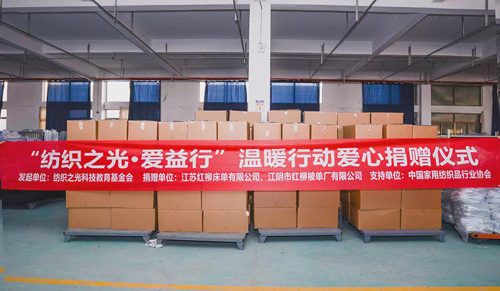紅柳心系社會(huì),早在2019年,紅柳參與紡織之光基金會(huì)開(kāi)展的“紡織之光·愛(ài)益行”溫暖哈青小學(xué)行動(dòng),為貴州山區(qū)的孩子們捐贈(zèng)了價(jià)值19.14萬(wàn)元的全棉六件套床上用品300套。