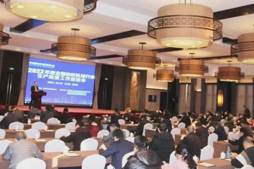 2021年12月27日,2022年度全國紡織機械行業生產經營座談會及織造機械分會、非織造機械分會2021年年會在江蘇省蘇州市聯合舉辦。中國紡織機械協會會長顧平,副會長劉松、趙曉剛、侯曦,秘書長叢政,副總工程師李雪清等行業協會領導,以及紡機業界企業代表出席會議。