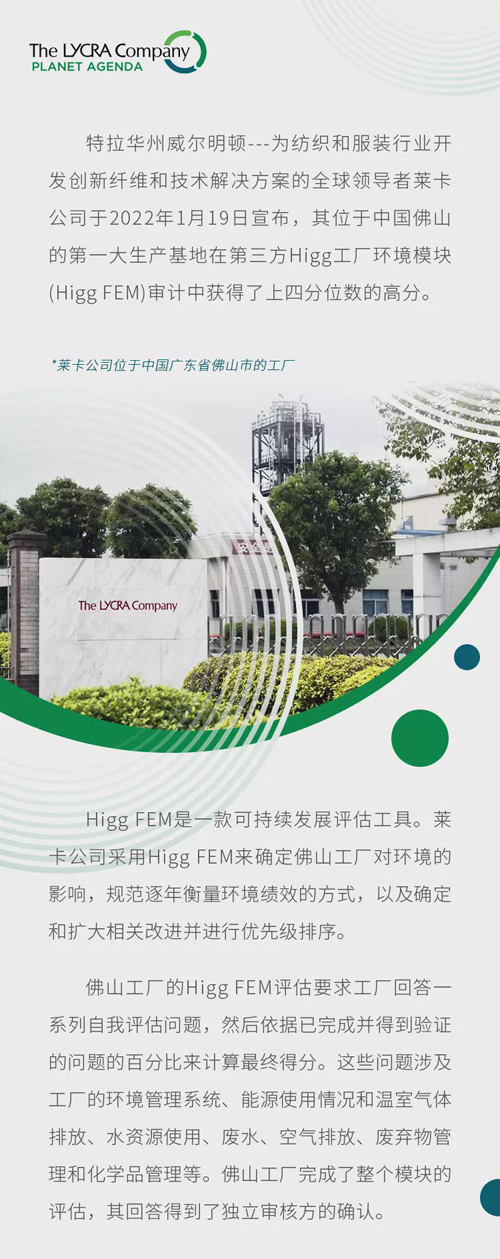 萊卡公司中國佛山工廠在Higg FEM評估中喜獲佳績