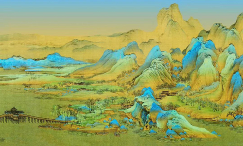 ![]() 據了解,江蘇陽光集團除了為國家冬季運動管理中心設計制作了西服套裝系列以外,同時還設計制作了一套中式禮服系列,服裝的靈感源自中國傳統山水畫《千里江山圖》和冬奧核心圖形中的“賽區山行”。