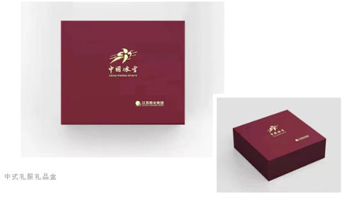 ![]() 除此之外,設計團隊深挖傳統色彩文化的創造性轉換,緊扣冰雪元素與民族特色,在中式禮服系列中,推出了霞光紅、天霽藍和玉石綠三種顏色供選擇:“天際霞光入水中,水中天際一時紅”。霞光紅,寓意日出東方,代表著熱情和希望;天霽藍,取自中國傳統陶瓷珍品霽藍釉的顏色,似雨過初晴天空之藍,猶如水洗,清新淡雅;“蘭陵美酒郁金香,玉碗盛來琥珀光?!庇袷G,則如盛滿佳釀的玉碗,晶瑩潤澤,典雅迷人。