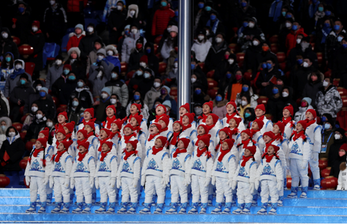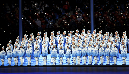 ![]() 北京冬奧會開幕式上丁潔設計的“雪花”服裝在閉幕式上再次亮相
