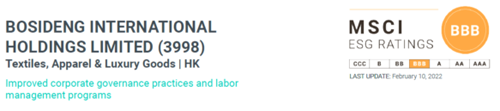 | 波司登ESG評級上調(diào)至“BBB”,在中國紡織服裝業(yè)領(lǐng)先! |