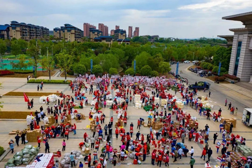 4月10日,湖口縣點對點援助上海物資從文體公園廣場發車,7輛貨車,滿載著30萬湖口人民的情誼。車上是總價值200余萬元的生活及防疫物資,10萬斤物資需在一天時間內完成裝箱裝車,需要社會各界愛心人士援手相助,時間緊任務重,湖口縣志愿服務聯合會立即向全縣征集志愿者。為響應湖口縣委縣政府同心抗疫的號召,在接到這個消息時,賽得利九江的志愿者們踴躍報名,數十名志愿者當天早上7點就達到現場。