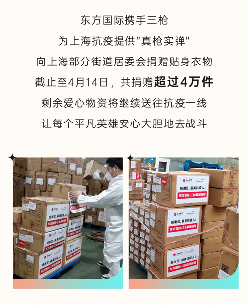 上海等地疫情牽動全國人民的心,面對當地防疫物資和生活物資供應不暢的問題,中產協、三槍、賽得利等快速響應上海等地需求,不僅向當地社區、高校等捐贈了大量防護服、口罩、消毒濕巾、衛生巾、紙尿褲等防疫和生活物資,還積極配合當地政府,助力打通配送、運輸、中轉、物資搬運等物流渠道環節。