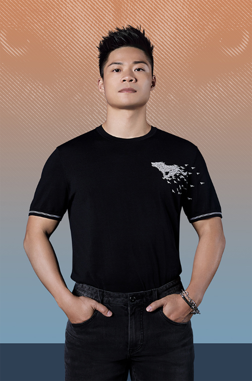 神秘深邃的黑色彰顯著男人特有的品位和生活態度,清朗自然的白色流露出男人未經修飾的天性,恰如天秤的兩端,一側是內斂沉穩,一側是隨性自如。黑白兩色的痕跡在蘇炳添的身上處處交匯,置身競技賽場,狼性出擊所向披靡;重返生活主場,亦是無懼進階,步履不止,風范如一。