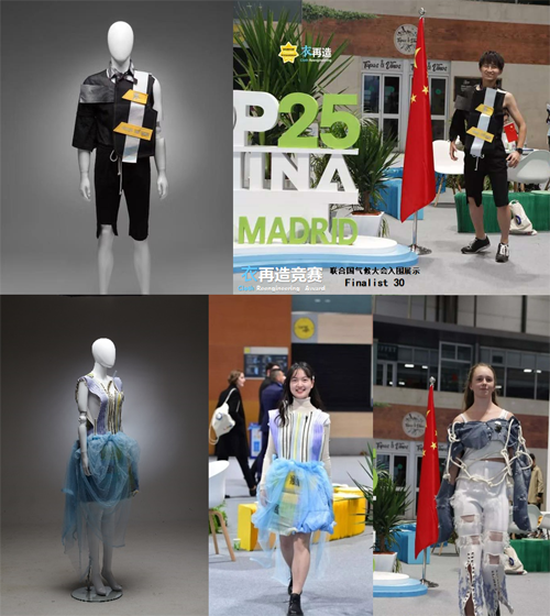 ![]() 2019年10月,中國紡織工業(yè)聯(lián)合會社會責(zé)任辦公室聯(lián)合勁霸男裝發(fā)起“中國未來設(shè)計(jì)師種子計(jì)劃——衣再造競賽”,從122名選手作品中遴選出的30套中國青年設(shè)計(jì)師再造衣作品亮相西班牙首都馬德里COP25聯(lián)合國氣候變化大會中國角,來自東華大學(xué)、中央美術(shù)學(xué)院的2名設(shè)計(jì)師代表與劍橋大學(xué)、東京大學(xué)、清華大學(xué)等8所高校環(huán)境與氣候領(lǐng)域相關(guān)專業(yè)研究背景的碩士和博士生共同演繹了 “當(dāng)可持續(xù)時尚遇見氣候變化”的特別行動。隨后,衣再造作品分別在李寧公司總部、2020中國可持續(xù)時尚周深圳季和上海季,以及2021中國國際時裝周進(jìn)行巡回展示。(青年:未來力量之再造時尚的可持續(xù)性 )