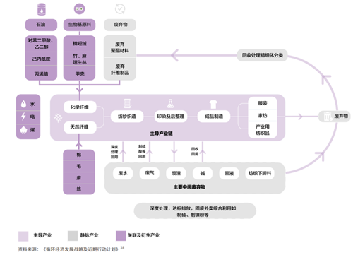![]() 《循環(huán)時尚:中國新紡織經(jīng)濟(jì)》提出中國新紡織經(jīng)濟(jì)愿景:構(gòu)建綠色循環(huán)低碳紡織服裝產(chǎn)業(yè)體系,提高行業(yè)資源利用效率,減少資源消耗和負(fù)面環(huán)境影響。