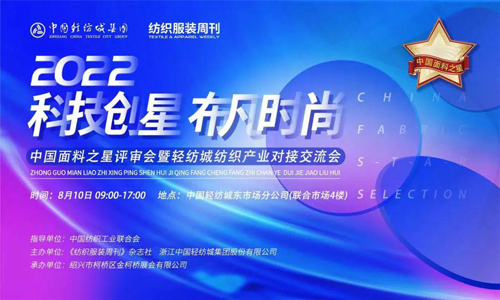 8月10日,2022“科技創星·布凡時尚”中國面料之星評審會暨輕紡城紡織產業對接交流會在中國輕紡城東市場分公司(聯合市場4樓)舉行。來自近300家企業、品牌的1200余塊面料同臺競技,涵蓋棉、毛、麻、絲、化纖、針織等細分領域,共同角逐評審會大獎、最佳科技創新獎、最佳圖紋色彩獎、最具時尚風格獎、最具市場價值獎、最佳企業服務獎,共計6個獎項。