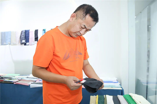 ![]() 杭州潤嫻服飾有限公司電商采購經理董明太第二次擔任面料之星評審會的評委,“相較于上次,能明顯感受到在疫情反復的加速影響下,面料企業在研發面料時更注重以客戶為中心,產品實用性更強。像這款醋酸+肌理的面料,既有功能性的體現,同時兼具美觀時尚,相信是很受市場歡迎的一款產品。”