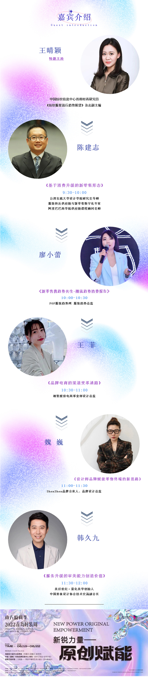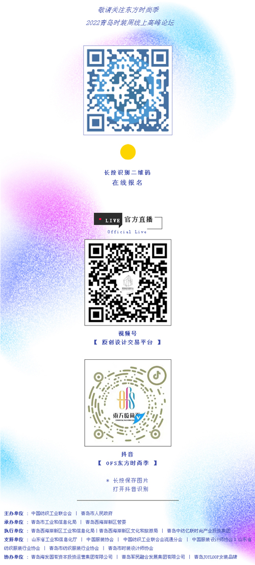 2022年青島時裝周《時尚變革之路·創新零售與渠道升級》產業高峰論壇將圍繞當下服裝零售市場的新趨勢、新痛點和新需求,從行業趨勢、運營模式、客戶經營、商品賦能等多個維度邀請服裝零售行業內各領域專家一同探討和探索未來服裝零售轉型的破局之路!