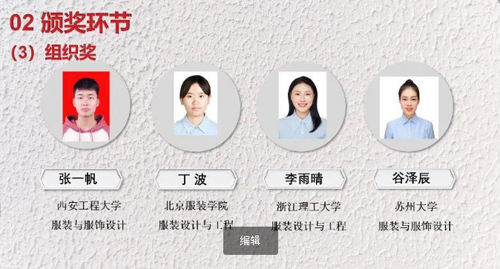 ![]() 組織獎獲得者西安工程大學張一帆表示,特別開心能參與此次夏令營活動,不僅學到了很多知識,更收獲了很多友誼,成為人生一大財富。北京服裝學院丁波表示,希望這樣的活動能長期舉辦下去,讓更多的同學受益。浙江理工大學李雨晴表示,通過這次活動,不僅開拓了的視野,更對投身紡織事業堅定了信心。蘇州大學谷澤辰表示,此次活動不僅增強了自己的團隊意識,更結交了很多朋友,受益匪淺。