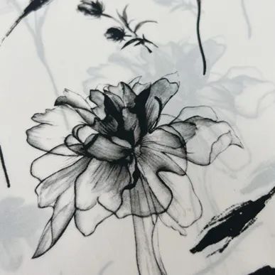 產(chǎn)品特點:采用天然棉纖維與源自森林的萊賽爾纖維相結合,面料環(huán)保,經(jīng)過特殊染整工藝處理,使得面料輕薄緊密,柔軟飄逸,布面疊加水墨印花,突顯江南水鄉(xiāng)韻味,更具中國風味。