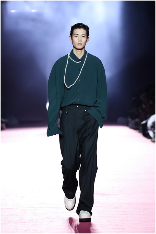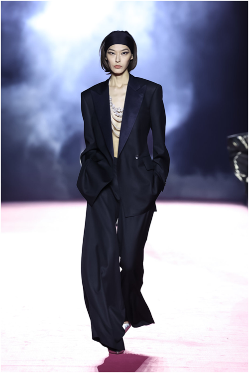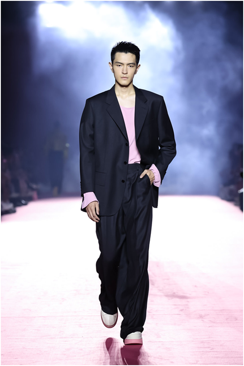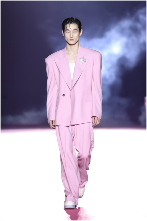 ![]() 在巨型全粉的露天秀場,沒有人可以置身事外,這是在極短的時間里,時裝與藝術最高頻的對話,也是一切細節浮動的精彩時刻。音樂的震動隱匿于服裝的流動中,模特動態的軌跡被強行拽入時代的洪流,靜止般“刺入”視線。本季,男性線條流暢與女性線條的剛硬形成對比,在沖突中用色彩抵達和諧,復古與未來交織,情緒與行為互補,從容踱步,設計理念緩緩流淌,即追溯過往,也啟幕新的紀元。