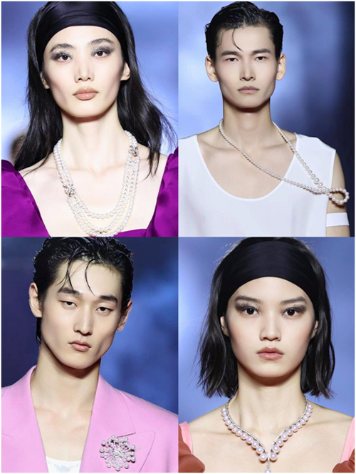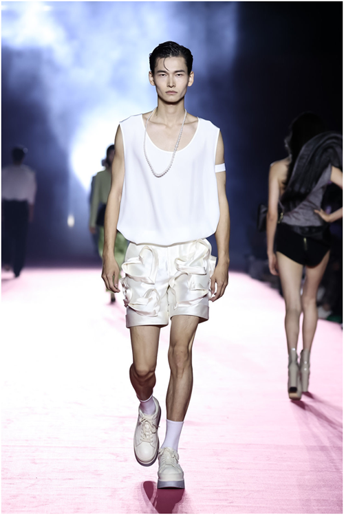 ![]() ![]() ![]() ![]() ![]() 立體造型仍是這一季的要點,外柔內剛的肌理是設計師對未來的塑造,布滿水晶的裙撐外掛典雅中釋放個性,平肩敞口的雕塑感是對藝術形態的反饋,似波濤催動中的貝殼廓形加上阮仕珍珠的點綴,驚艷中回應自然的情趣,珠寶的光澤在衣襟處綻放,已然在尖端招搖。名模毛楚玉身裸穿黑色西裝,內搭阮仕“女王花園”系列項鏈,珍珠與鉆石的巧妙搭配為服裝與肌膚搭建了極妙的緩沖地帶,讓性感在搖曳中無限釋放。男裝如騎士般的冷冽與性感是Beautyberry極致純粹的辨識度,流暢的線條用阮仕珍珠的自然屬性打破了剛與柔的界限,珍珠,將成為男性時尚無限輪回的鑰匙。將巨量的藝術性投放至服裝造型中,卻絲毫不割裂實用的功能,藝術時裝化在時空的異動中從未褪色。
