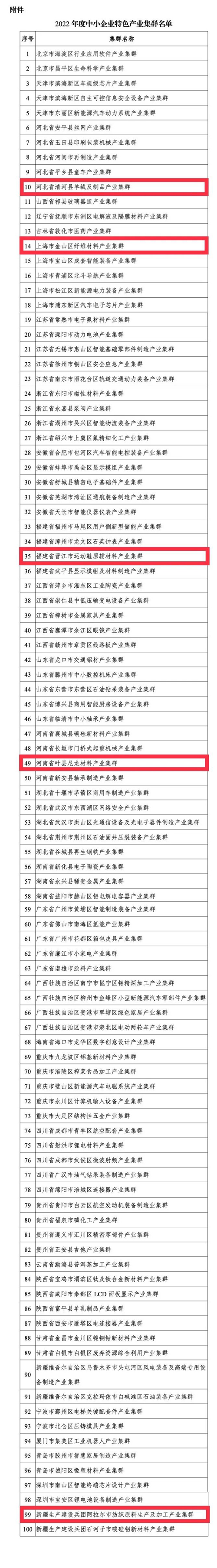 | 工信部公布2022年度中小企業特色產業集群名單,五個紡織及相關集群位列其中 |