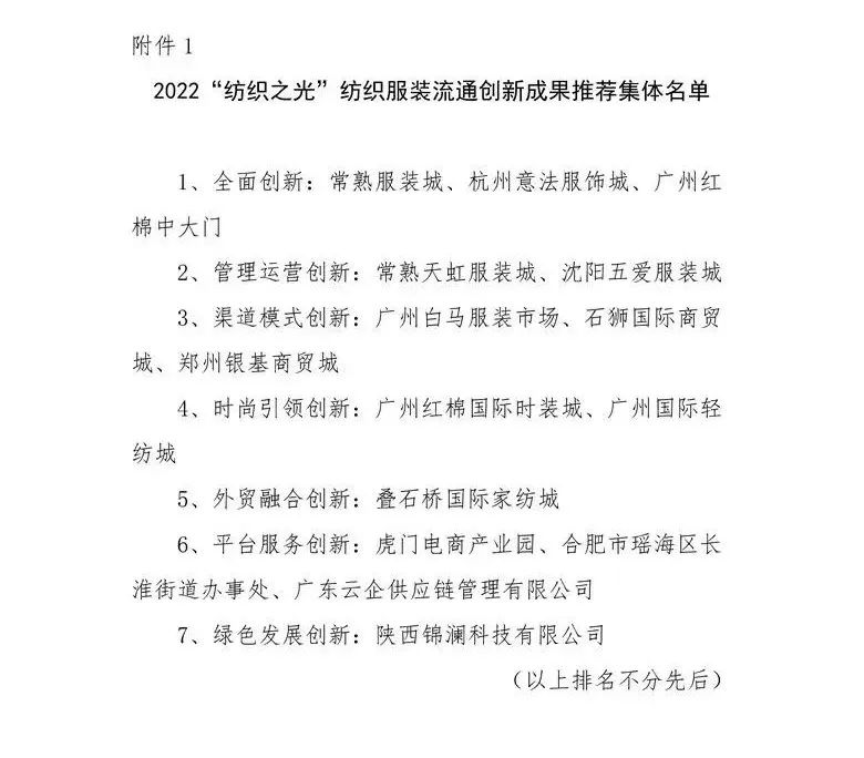 2022“紡織之光”紡織服裝流通創新成果推薦名單公示