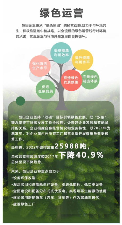 ![]() 恒田企業一直堅持“雙碳”目標引領綠色發展,把“雙碳”理念貫穿可持續發展工作全過程,處理好企業發展和節能減排的關系。