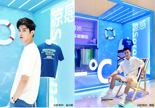 菌絲、苔蘚、綠色植物與科技明亮色系的交映融合,形成自然炫酷的獨特風格氣質,吸引眾多KOL打卡拍照,在社交平臺等潮流聚集地分享各自的潮流態度。