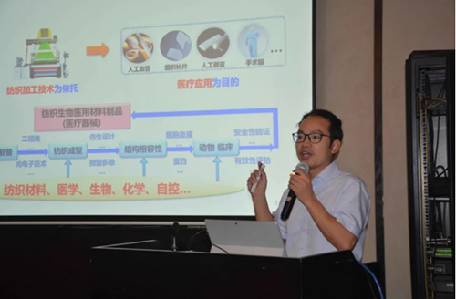 ![]() “中國(guó)是全球潛力最大的生物醫(yī)用紡織材料市場(chǎng)。我國(guó)生物醫(yī)用紡織材料的研究發(fā)展迅速,高端成果不斷產(chǎn)出,但原創(chuàng)成果偏少,基礎(chǔ)研究亟待增強(qiáng)。”東華大學(xué)紡織學(xué)院副院長(zhǎng)、上海市現(xiàn)代紡織前沿科學(xué)研究基地副主任王富軍帶來的“生物醫(yī)用紡織品設(shè)計(jì)及發(fā)展”課題,同樣展現(xiàn)了紡織人的科技探索精神。