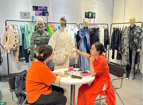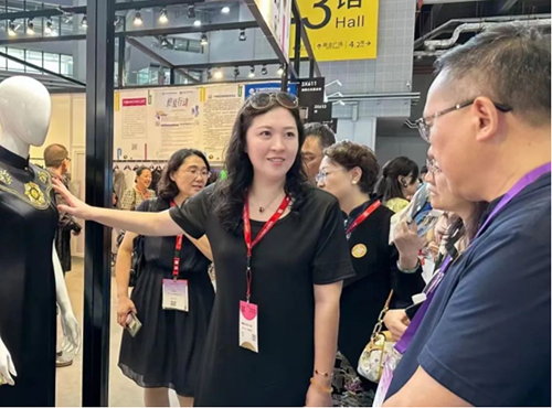 ![]() 江西服裝學院創新創業學院院長段婷介紹,學校現在實行的是五育并舉、方向分流、應用為要“三位一體”的人才培養方案,構建了專業學院、產業學院、雙創學院“三院聯動”的人才培養模式,建立了高校、政府、企業“三方協同”的合作育人生態體系。她表示,這次能來參展,機會難得,因為展會是和市場、企業直接對接。江西服裝學院創新創業學院通過這次展會,將學校的一些作品推向市場,把作品變成商品,真正融入市場。這次展會帶來的的是兩位老師成立的一個品牌——chen.1988,他們都是全國十佳設計師。段婷最后表示,非常感謝“紡織之光”給予這樣的機會,希望今后能有更多的機會,能到市場中去競爭,與市場進行溝通和交流。