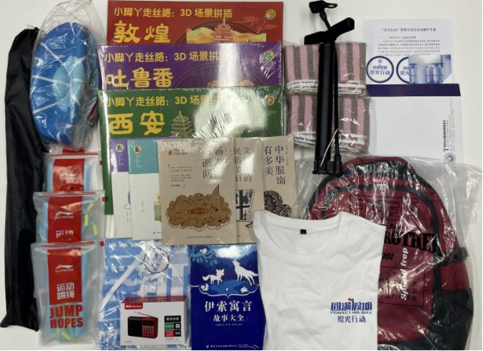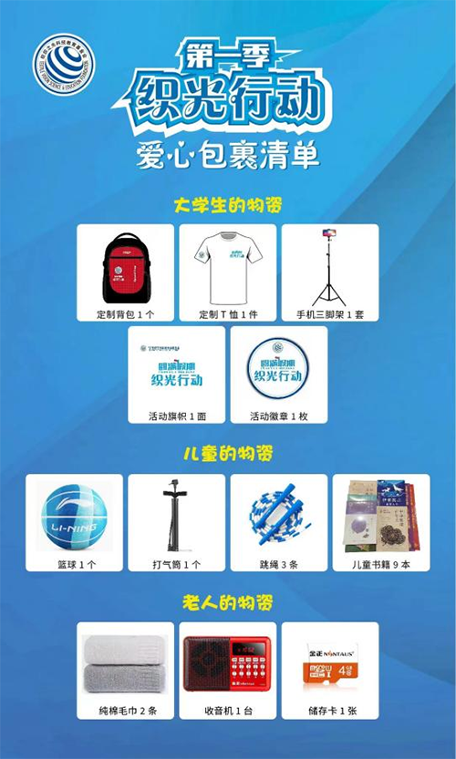 7月21日開(kāi)始,200名結(jié)伴大使相繼從所在地出發(fā),他們身著統(tǒng)一的T恤,佩戴著“織光行動(dòng)”徽章,身背裝著書(shū)籍、運(yùn)動(dòng)器具、收音機(jī)、毛巾等禮物,走進(jìn)鄉(xiāng)村,走進(jìn)孩子老人中間。