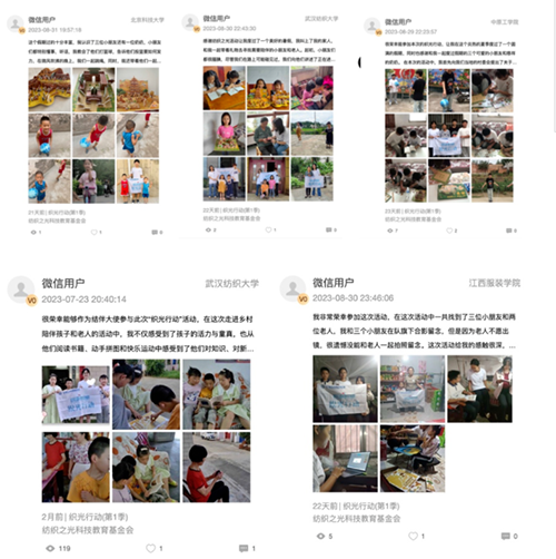 每一個(gè)報(bào)名留言都飽含著深情,具有紡織特色的“織光行動(dòng)”迅速燃起了莘莘學(xué)子,尤其是紡織院校大學(xué)生志愿者們熱心公益的赤誠(chéng)之心。