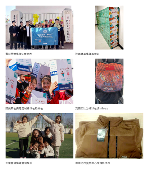 ![]() 令人感動的是,本次“紡織之光·愛益行”行動發起后,紡織之光基金會迅速集結了北京青山百世服裝集團、湖南省陽光箱包有限公司、北京玫瑰黛薇服裝有限公司、禾雀童裝、中國紡織信息中心等勇擔社會責任、熱心公益的紡織力量,共募集456件大衣、205個定制棒球包和多功能書包、80箱豪悅套裝紙、80件童裝棉服、20件抓絨衣等愛心物資。在涼善公益、涼山州瑪薇社工發展中心等當地志愿者的幫助下,這批愛心物資順利發放到了大涼山的支教老師、社工以及孩子們手中。