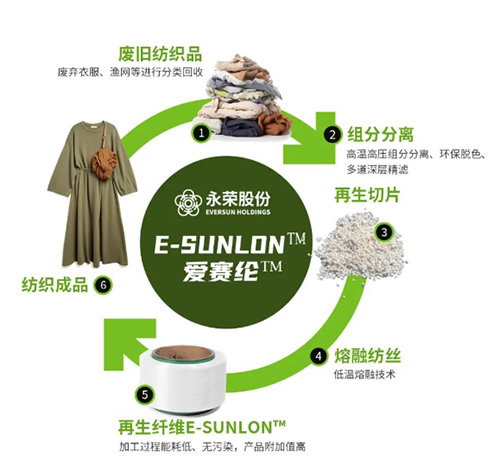 為了進一步優化布局,踐行公司提質增效戰略主題,永榮股份提高了廢絲回收利用率。早期在生產過程中產生的廢絲過往采用外售的方式進行處理,但這種方式帶來的經濟效益較低。因此,從2020年起,時尚服飾研發部開展了廢絲回收再生的研發,近三年廢絲利用率大幅提升。廢絲再生項目不僅提升了廢絲自用回收率、累計減少碳排放超過3萬噸,隨著外售廢絲的減少,成功倒逼提升了廢絲外售價格。白色廢絲的價格較2020年提升了27%達到CPL價格87%,而黑色廢絲此前售價低廉,只有CPL72%,經再生項目加工后的價格提升了42%。這種優化布局的成功實踐為永榮股份的價值創造提供了新的增長極。