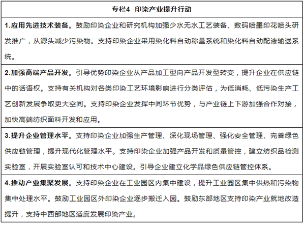 8.增強紡織產品印染加工環(huán)節(jié)的韌性和競爭力。優(yōu)化印染行業(yè)發(fā)展環(huán)境,支持印染企業(yè)開展智能化綠色化改造,減少能耗水耗及污染物排放,強化紡織產業(yè)體系完整優(yōu)勢和產業(yè)鏈發(fā)展韌性。