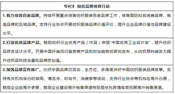 17.培育有中國特色和世界影響的知名品牌。支持地方和企業(yè)開展紡織服裝品牌建設,通過培育知名企業(yè)品牌和區(qū)域品牌,增強我國紡織工業(yè)在國際供應鏈中的話語權,提升產業(yè)集群內中小企業(yè)盈利能力和發(fā)展活力。