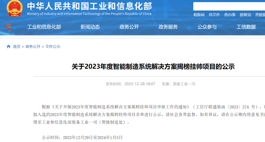 | 3家紡企揭榜!2023年度智能制造系統解決方案揭榜掛帥項目公示名單發布 |