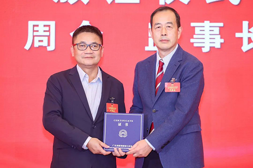 ![]() 廣東省民政廳原一級巡視員、廣東省社會組織總會黨委書記/王長勝向卜曉強頒發執行會長牌匾
